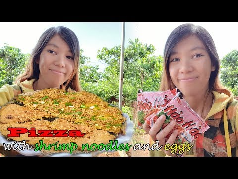 Unique and novel with 'Pizza with shrimp noodles and eggs'